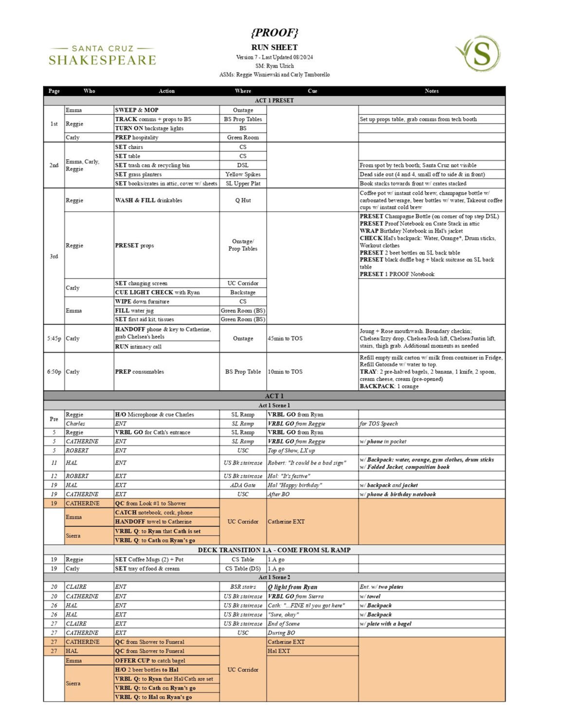Assistant Stage Manager, Santa Cruz Shakespeare